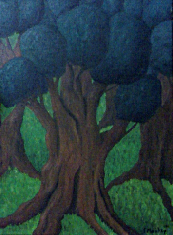 Έργο του Γιώργου Mικάλεφ με θέμα την Eλιά. Λάδι σε καμβα.