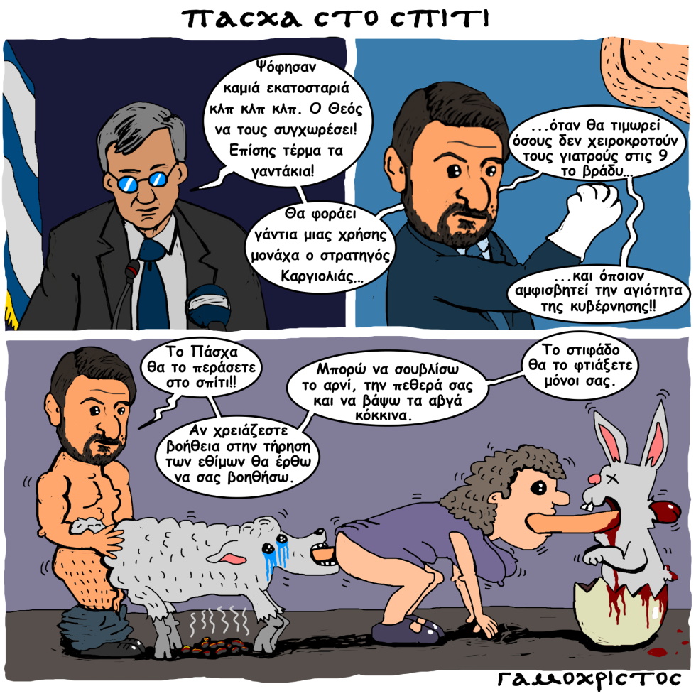 Κόμιξ απ’ τ’ αριστερό χέρι τ’ Αγιού.