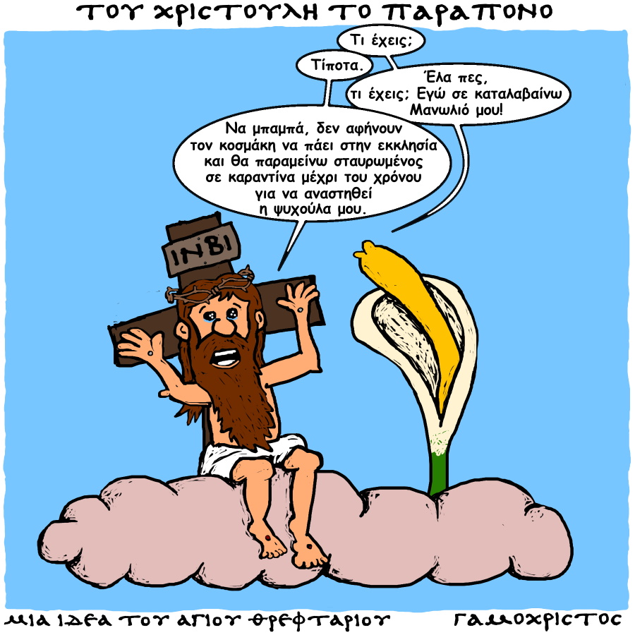 Κόμιξ απ’ τ’ αριστερό χέρι τ’ Αγιού.