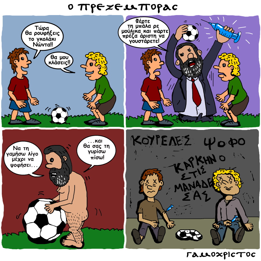 Το παρακάτω κόμικ, είναι μονάχα για τους φανατικούς της Ελληνικής ΤΡΑΣ ΤΙ-ΒΙ οι οποίοι θα καταλάβουν. Δεν παραθέτω το βιντεάκι από την εκπομπή για ευνόητους λόγους…