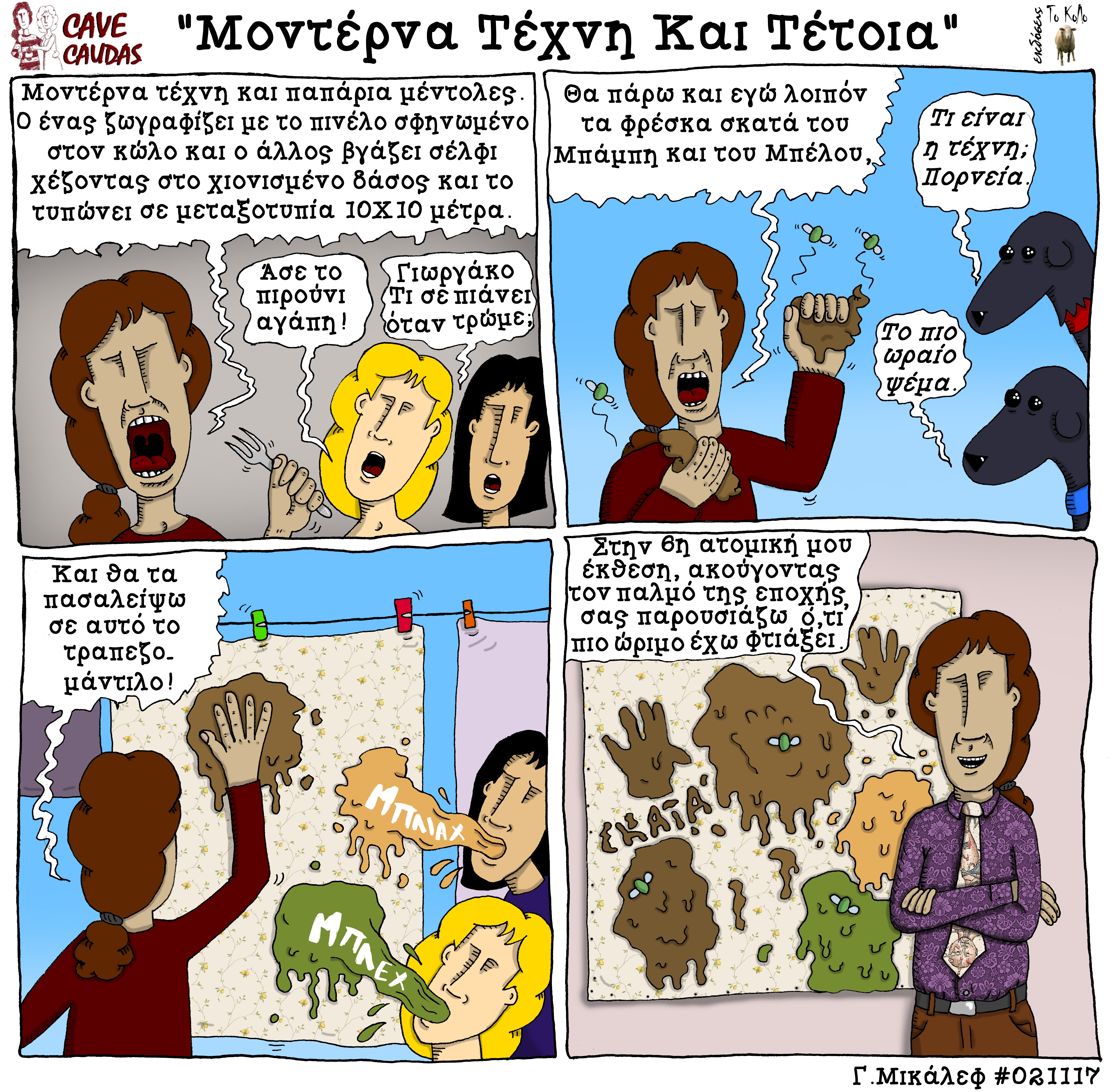 Ο Γιώργος Μικάλεφ και οι Εκδόσεις Το Κόλο σας παρουσιάζουν τη σειρά κόμικ Cave Caudas (=Προσοχή Ουρές). Οικογενειακές ιστορίες και τέτοια, βγαλμένα από την καθημερινότητα και όχι μόνο. Κάποιες ιστορίες είναι βγαλμένες από τα ημερολόγια της Μυρτώς. Η σελίδα της σειράς εδώ… cavecaudas.wordpress.com Ρίξτε μας ένα like στο φουμπού και αν τσεκάρετε και τη λήψη ειδοποιήσεων, σας υπόσχομαι πως δεν θα σας κουράσω. Λογικά ένα σκίτσο τη βδομάδα πάνω κάτω. Ευχαριστώ! Ακολουθεί το πρώτο επεισόδιο: «Οι Φίλοι Του Μόργκαν».