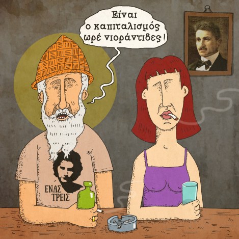 Τώρα αν βρίσω Άγιος άνθρωπος θα φταίω; Είναι ο καπιταλισμός ωρέ νιοράντιδες! Για εζαβωθήκατε τέλεια; Να πάει στον αγύριστο και ο μεγιστάνας και ο φασίστας ο Εμίρης γαμώ τη φάρα τους! Ξεστραβωθείτε γιατί μετά θα είναι αργά. Θέλετε να ζείτε ως δούλοι και να γλείφετε τα ξεροκόμματα που θα πετάξει στους Κορφούς ο κάθε εγκληματίας; Γιατί εγκληματίας είναι όποιος έχει τόσο τάλαρα! Εγκληματεί κατά της ανθρωπότητας! Ανάθεμα τα τάλαρα!