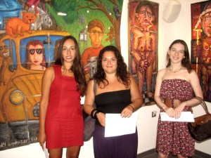 Στα εγκαίνια της έκθεσης μαζί με μια συμμαθήτρια απ’ τα πολύ παλιά, την «μητέρα» μου, την φίλη Έλενα και τη Σούλα που κοιτάει το κινητό της