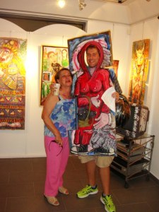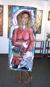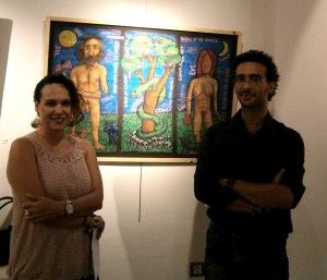 Ο υποφαινόμενος καλλιτέχνης μαζί με την πρόεδρο της ΕΙΚΕ Έλενα Σουέρεφ ποζάρουν μπροστά απ’ τον Αδάμ & την Εύα