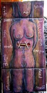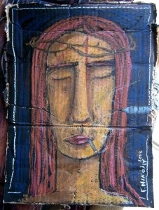 Τη βασική φόρμα – στάση των έργων την έδωσε το όρθιο ανάπτυγμα της χαρτόκουτας πάνω στην οποία και είναι ζωγραφισμένα με ακρυλικά χρώματα και με Παστέλ λαδιού…