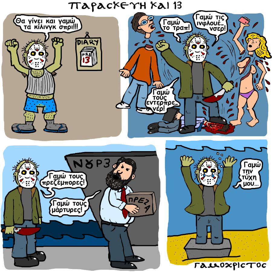 *Τα πρόσωπα και οι καταστάσεις είναι φανταστικές και ουδεμία σχέση έχουν με την πραγματικότητα! Ο σκιτσογράφος θα ήθελε να ζήσει λίγο ακόμα.