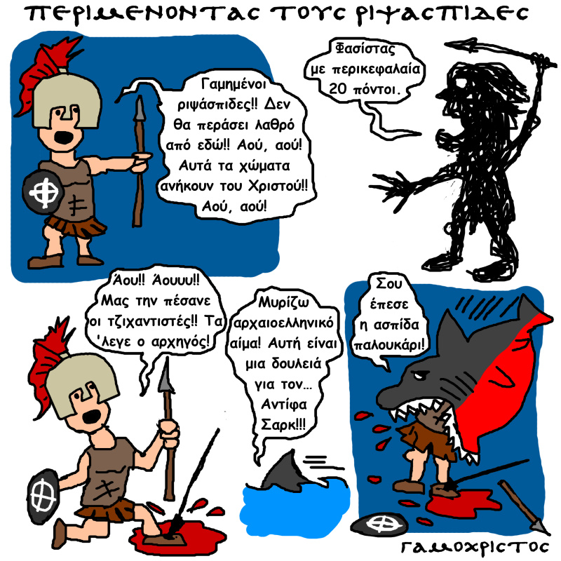 Κόμιξ απ’ τ’ αριστερό χέρι τ’ Αγιού.