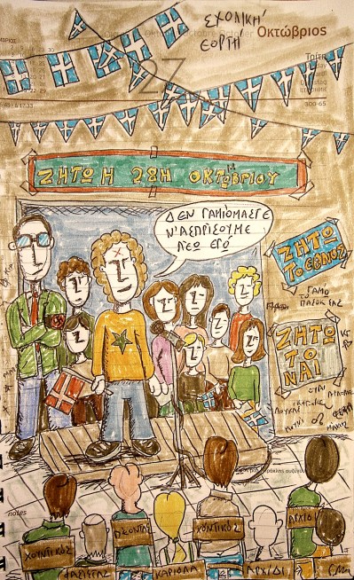 Ζήτω το έθνος!! Ζήτω ο στρατός, η πατρίδα, το όχι. Σημαίες του Βυζαντίου & της Ελλάδας μας κρεμασμένες παντού. Οι δάσκαλοι που βρωμούσαν χούντα οι κώλοι τους, περήφανοι πατριώτες να κάνουν την παρουσίαση στη γιορτή του σχολείου, μαζί με τους πασόκους και όλο το συρφετό που ανέλαβε να μας μάθει γράμματα. Εννοείτε πως δεν ήταν όλοι οι δάσκαλοι μας, γαμημένοι ρατσιστές που έριχναν ξύλο για την καύλα τους, με ιδιαίτερη αδυναμία στα Αλβανάκια. Μπαίνει στην τάξη ο Δημήτρης ο γαμημένος φασιστοδάσκαλος την ώρα που κάναμε μάθημα. “Ποιοι από εσάς είναι από την Αλβανία?” ρωτάει από την κωλοτρυπίδα που είχε για στόμα και ελπίζω να έχει σαπίσει τώρα… Δυο παιδιά σηκώνουν το χέρι. “Κάνω τα χαρτιά να σας στείλω από εκεί που ‘ρθατε” είπε το καρκίνωμα χαμογελώντας και έφυγε. Εμείς βουβαμάρα. Άλλη φορά τραβολογούσε κάποιος Δάσκαλος από τάξη σε τάξη έναν άλλο μαθητή (από την Αλβανία) διέκοπτε το μάθημα και διάβαζε την “άθλια” έκθεση του σε μία πετυχημένη προσπάθεια να τον γελοιοποιήσει σε όλο το σχολείο… “ω μαίγας αλέξανδρως ανέβικαι τι σκάλλα”. Οι παρελάσεις υποχρεωτικές βέβαια. Κάνα δυο “υποκείμενα” μονάχα δεν παρέλαυναν επειδή δεν είχαν λεφτά οι γονείς τους ή για λόγους άγνωστους & περίεργους… Ανατριχίλα στον Εθνικό Ύμνο, μέχρι και σήμερα το δέρμα να ανατριχιάζει ανεξέλεγκτα. Και σήκωσα και μια υφασμάτινη σημαία στην έκτη τάξη, μια κρύα μέρα, με τα κοντά παντελονάκια, το πουκάμισο, τη ζακέτα και έναν φιόγκο αν θυμάμαι καλά. Η περηφάνια μου δεν μπορούσε να μετρηθεί σε εκατοστά… και μετά άρρωστος δυο βδομάδες… μα δεν θα θυμάμαι καλά.