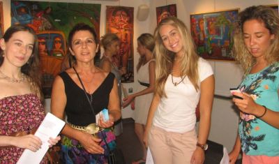 Στα εγκαίνια της έκθεσης μαζί με μια συμμαθήτρια απ’ τα πολύ παλιά, την «μητέρα» μου, την φίλη Έλενα και τη Σούλα που κοιτάει το κινητό της