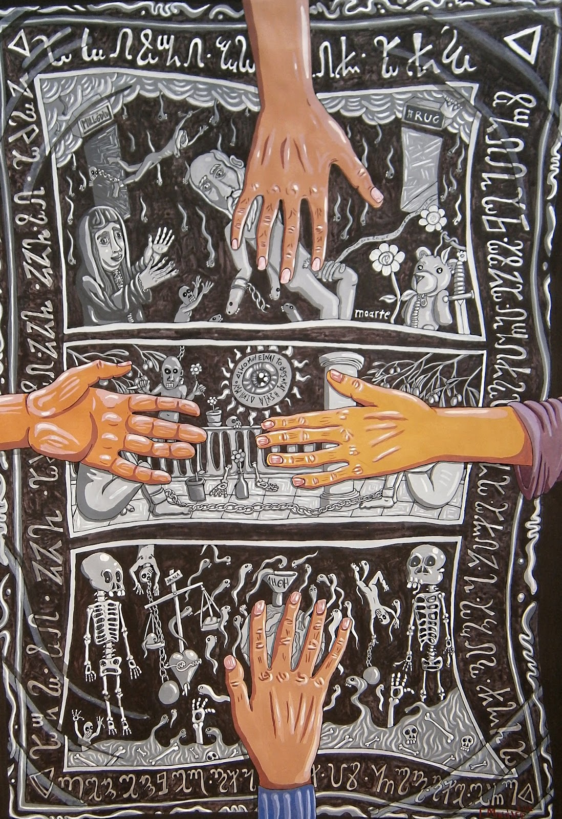 Προβληματίζομαι, το τελευταίο καιρό, πάνω στο τρίπτυχο «ΠΡΟΘΑΝΑΤΙΑ – EΠΙΘΑΝΑΤΙΑ – ΜΕΤΑΘΑΝΑΤΙΑ»… όλος αυτός ο προβληματισμός μου μου έδωσε θέμα για ζωγραφική. Φιλοτέχνησα έργα με θέμα «Ο Θάνατος είναι άσχημος» (Death is ugly)