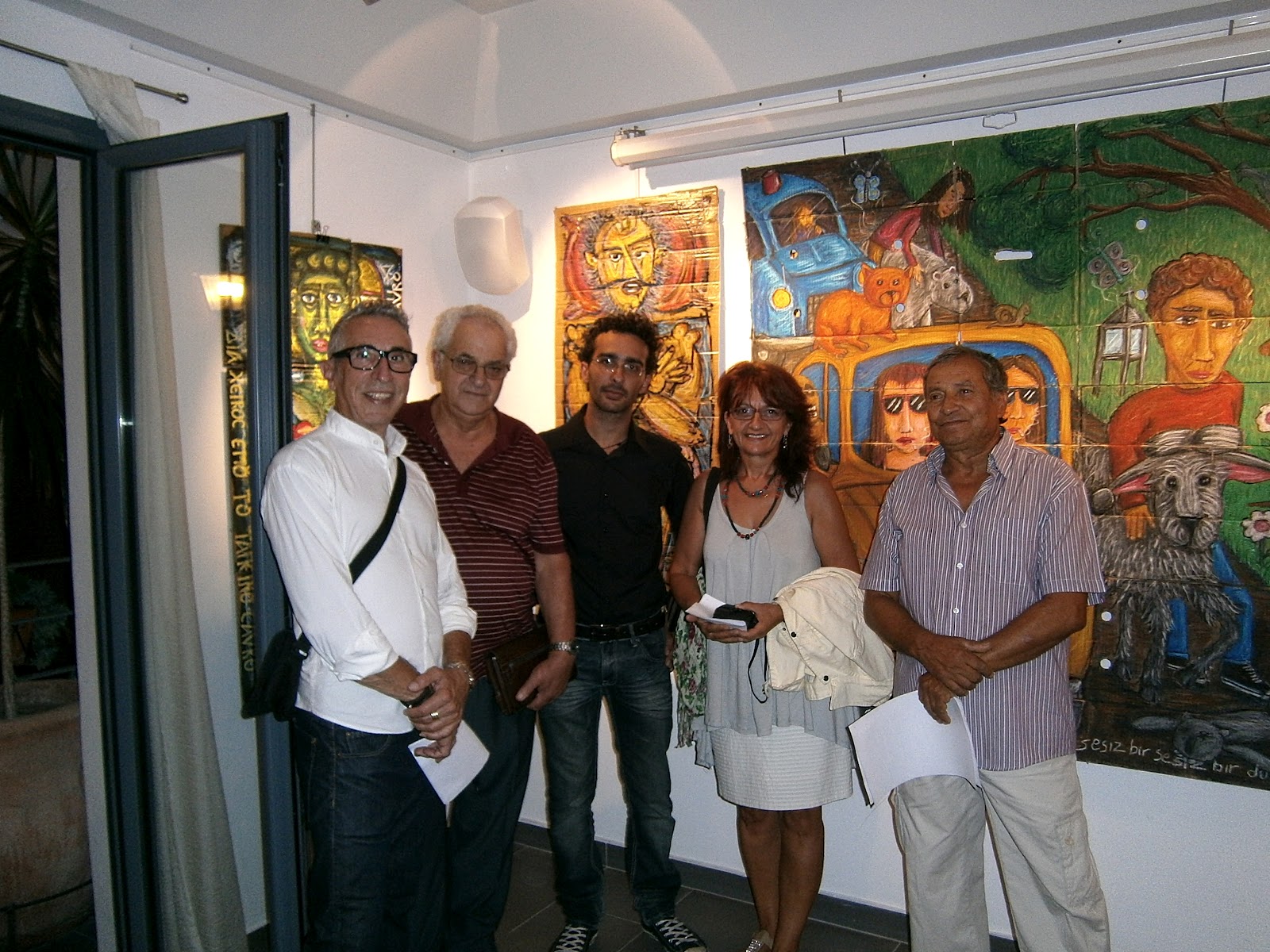 Με τους ζωγράφους Κωνσταντίνο Μοντσενίγο, Κώστα Γραμμένο, Βέτα Μουζακίτη & Άγγελο Γιούργα στη βραδιά των εγκαινίων.