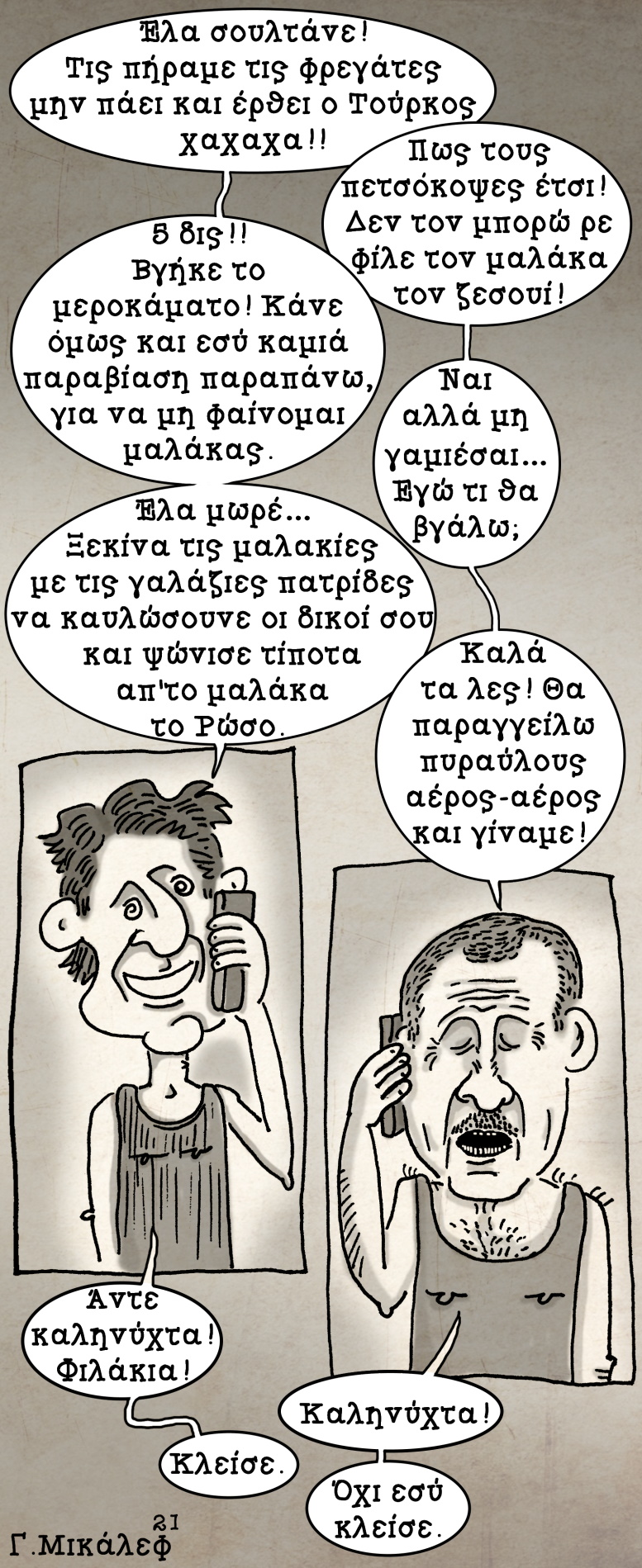 *Τα πρόσωπα και οι καταστάσεις είναι φανταστικές και ουδεμία σχέση έχουν με την πραγματικότητα! Ο σκιτσογράφος θα ήθελε να ζήσει λίγο ακόμα.